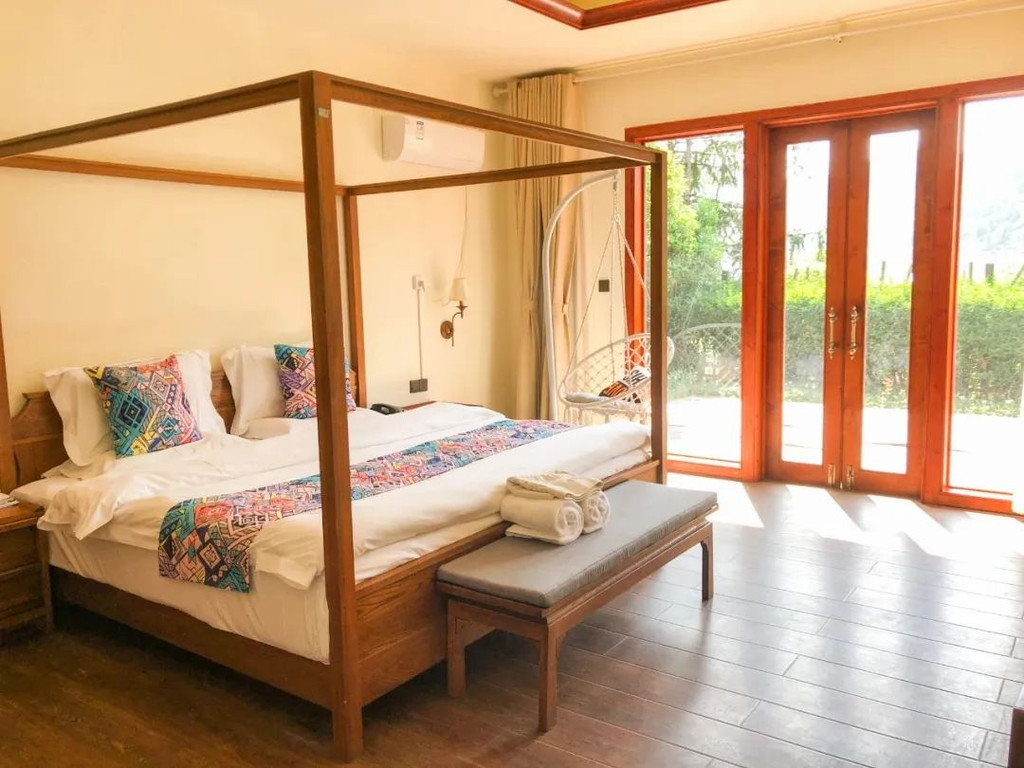 盘州康养休闲园精品客栈依山傍水而建,与附近山水浑然一体,每一扇窗均是一幅自然美景,古朴自然、韵味款款。清晨被清脆的鸟声吵醒,野生松鼠将成为你的邻居。这里可以自己种菜、浇花,体验劳动的乐趣。夜晚,洗去一路旧尘,进入如痴梦乡。