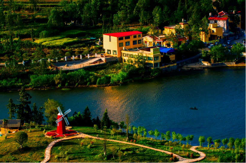六盘水市盘州市两河街道:因境内有一处落水坑,两头出水中间落,得名“两河”。这里平均气温在19摄氏度,土壤肥沃、森林覆盖率高,是《2023中国候鸟式养老夏季栖息地适宜度指数》排行榜第一的城市辖区,也是避暑旅居的理想去处。两河街道独特的地理气候与适宜的区位优势已成为盘州市发展喀斯特地貌森林、水体、田园等复合型旅游产业的基础和载体,形成了设施农业、生态食宿、养生休闲、创意田园四大板块构成的“农旅双链”新模式。2022年,两河街道入选贵州“第四批全省乡村旅游重点村”。