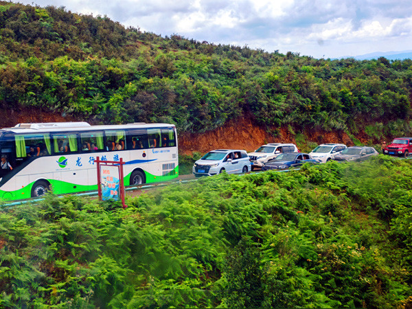 当日,李爱民师傅驾驶的大巴车进入景区后,就开始遇到了拥堵的车流,大部分都是来此自驾游的车辆。由于景区中的道路是单行线,加上车多,又是山路,故此行驶极为缓慢。但是车子速度再慢,也挡不住大家观赏车窗外的风景。
