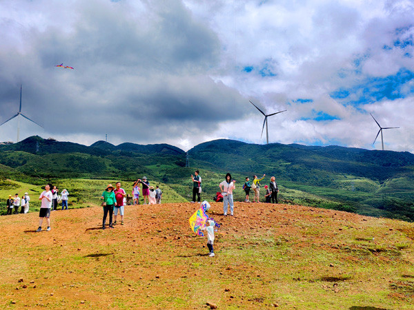 记者随行的《中国凉都•六盘水康养度假游》之旅,在六盘水周边游的第二天依然是半日游的行程。2024.07.21下午14:00,团队经过一个多小时的车程,导游严翠华带领大家来到乌蒙山大草原观光。