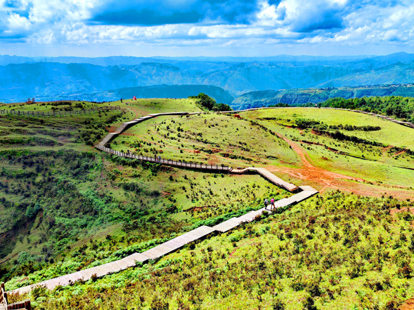 如今,乌蒙大草原由乌蒙滑雪场、七彩滑道、风力发电站、观佛台、杜鹃花海、犀牛潭、牛棚梁子、白草坪及天池登众多的景点组成,它们以其独特的地貌和大自然赋予的风光美景吸引着八方来客纷至沓来。(图文:冯赣勇)