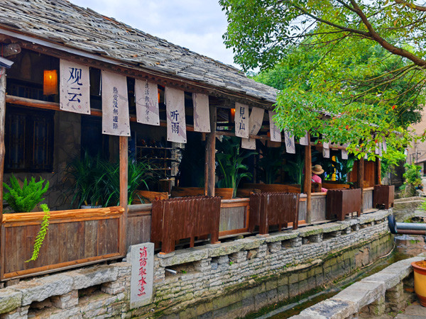 离开天龙学堂漫游古镇,只见,天龙屯堡古镇的建筑风格融合了许多江南建筑元素,你能在这里看见小桥流水的景象,以及独具特色的“石板房”。其木雕也蕴含着江淮苏浙文明和精湛技艺。