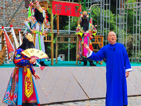 当天表演的是表现杨家将故事的《穆柯寨》。演出开始前,先由一名身穿蓝色长袍的村民进行了剧情简介。之后,由古镇中的演员进行了《穆柯寨》的表演。虽然听不懂他们的唱词,但是看的出来,他们表演的都很认真,尽心尽力,唱念做打,一招一式均很到位。获得了现场观众们的热烈掌声。