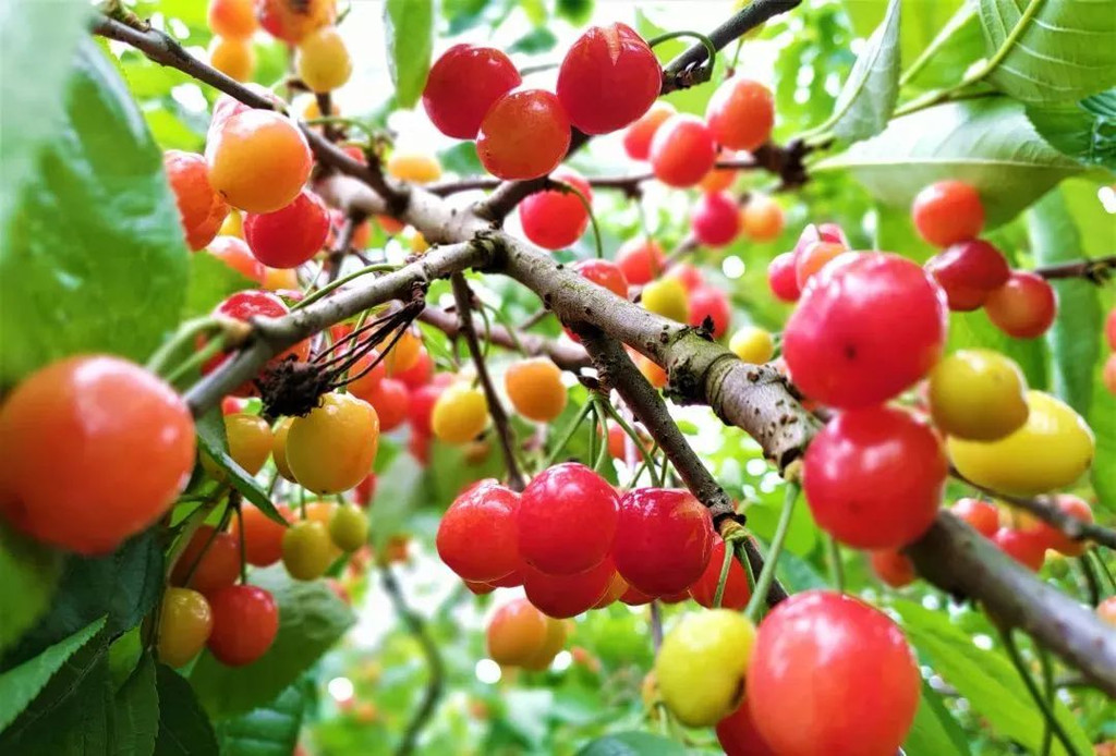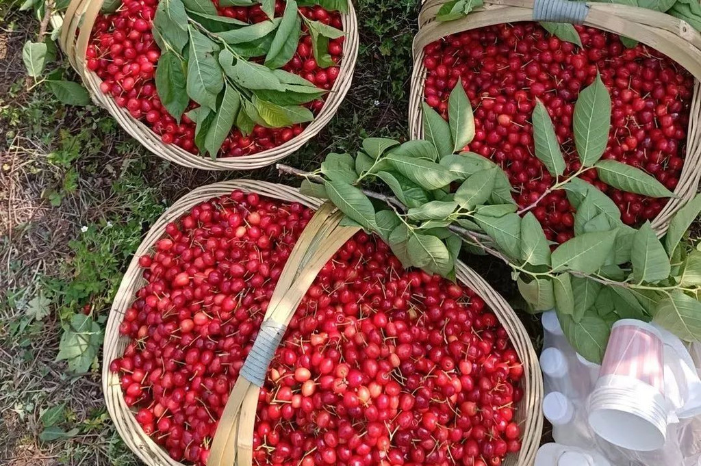 走进俄脚村转山组,空气中弥漫着樱桃的甜香,一颗颗樱桃缀满枝头,在阳光的照耀下,娇嫩欲滴。这里因具有北盘江上游的小气候特点,生长在这里的樱桃果实较大、果肉较厚,皮薄而果味香。