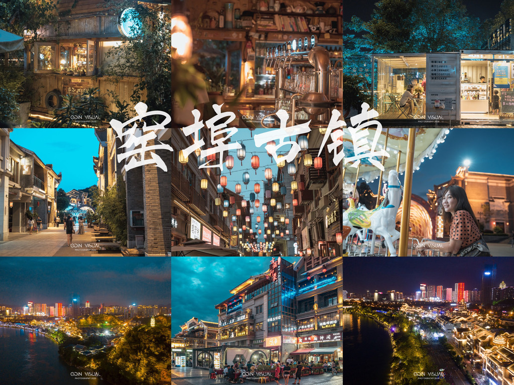 窑埠古镇的灯亮了,这是古镇最美的时候。古色古香的建筑配上灯光设计,有种穿越到夜色下的长安城的幻觉。