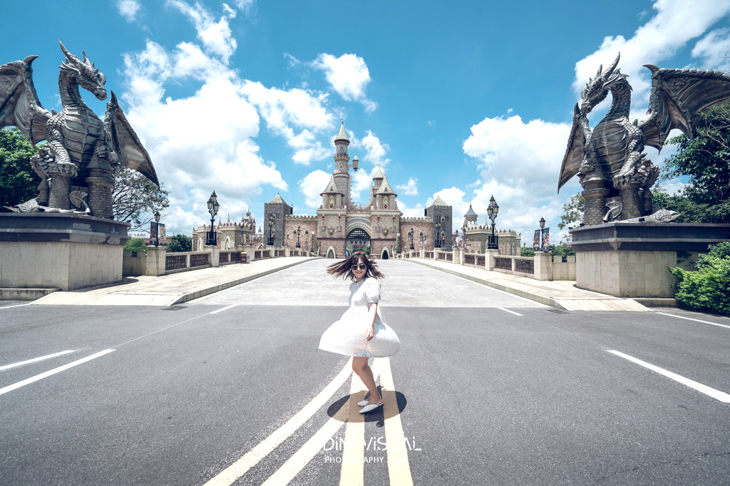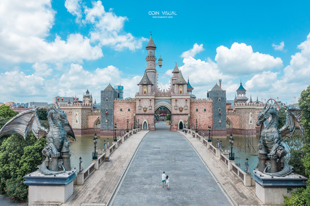 卡乐星球的大门,大气程度盖过了其它的游乐场,包括著名的环球影城都远远不及。城堡刚好建在一条护城河的对岸,守卫它的是两头黑色的巨龙🦖🦖。