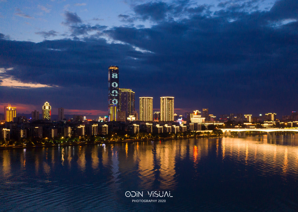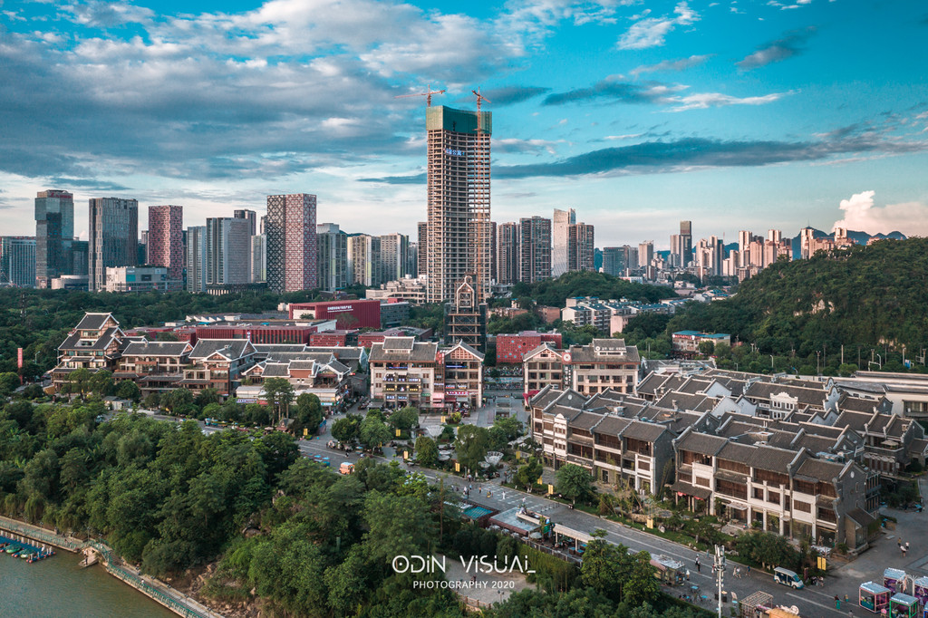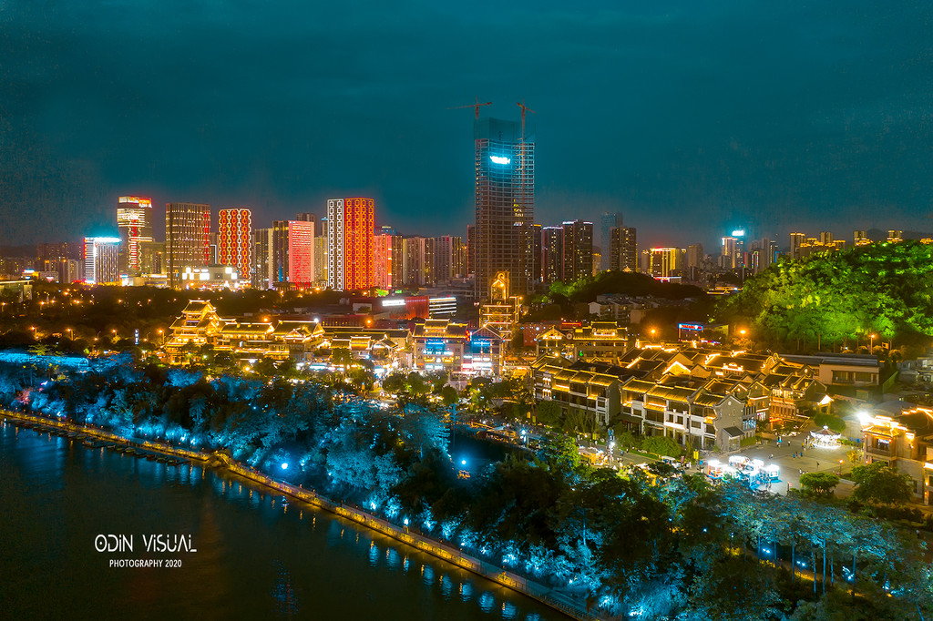 窑埠古镇的航拍夜景,起飞时间晚了,天色还是略显暗淡,但依然很美。古镇,高楼,群山,宝塔,这就是 柳州 特色夜景。