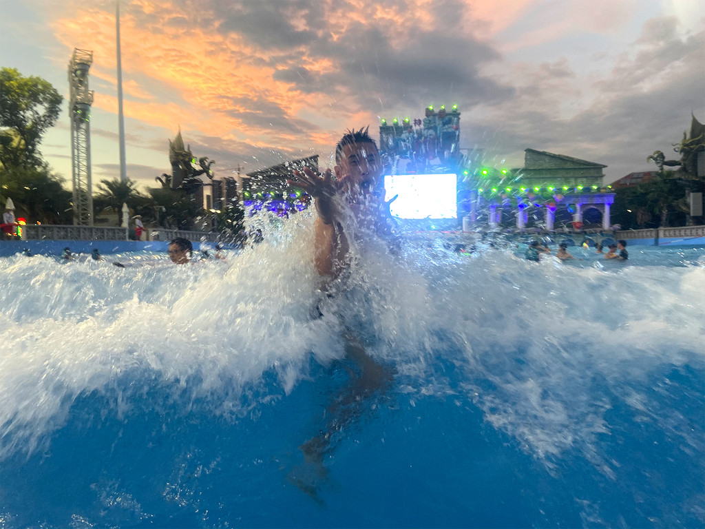 每个游乐场的过山车肯定不能错过的!!先到光速之旅,时速90公里的超级过山车,第一次坠落高度20米!配 合水 上爆炸特技,速度与激情,这个开胃菜下来,游玩的激情很快被点燃了。