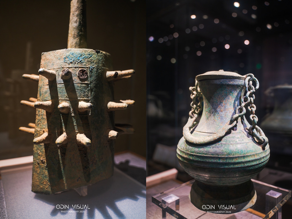 要看宝贝还得去古代青铜展馆,这里甄选了150件具有代表性的青铜艺术品。展区中的汉墓墓坑及随葬品均为文物异地保护。每件藏品设计新颖,构思巧妙,如果有时间都值得一一品鉴。