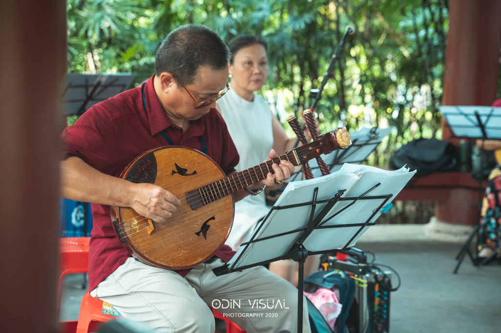 往公园里走几步就能听到乐器的弹奏声,我们随着声音走过去,看到好多老爷爷和奶奶在弹奏,非常投入。阮琴的声音穿透整个花园,悦耳动听,音乐果然是陶冶身心的良药。