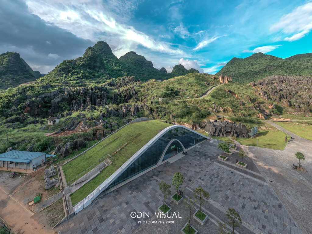 图下面这个的造型独特,完全融入到了景色里,我猜测可能是个游客中心?