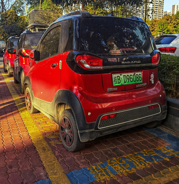 柳州除了满大街的粉店,更多的却是五菱宝骏-微型电动车,它们成群结队地花枝招展、招摇过市,不像是汽车上街解决交通,倒像是摇头摆尾的宠物在扮乖卖萌。↓