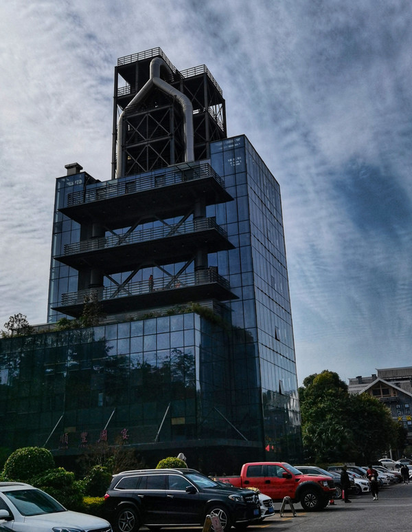 由旧厂房改造而成的网红建筑,结构框架、工艺管廊的首部皆作外露,身披玻璃幕墙,个性十足地招摇在园区,能看得出来:现如今的它已然是门庭若市的繁盛酒楼吗?↓