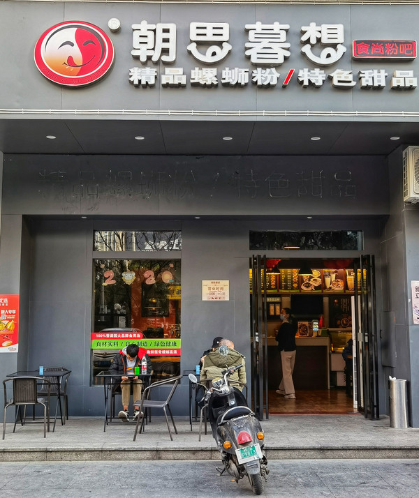柳州满大街的螺蛳粉店,随便选一间螺蛳粉店的出品估计都是很赞的,但我们还是按照酒店大堂前台靓女的指点,来到这间本地街坊的口碑名店—“朝思暮想”,亲临试“臭”。↓