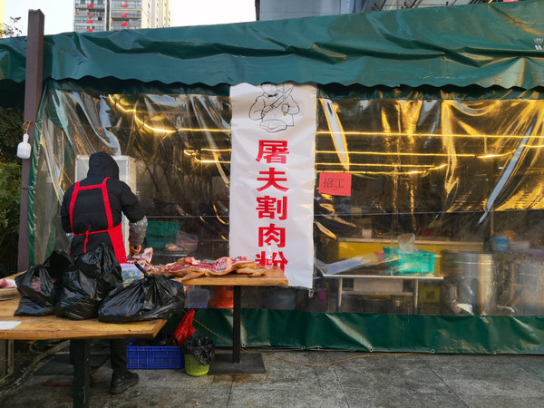 柳州满大街的其他粉店也很多,有时一排十间、八间的街铺,倒有四、五间是粉店:羊肉粉店、马肉粉店、驴肉粉店、桂林米粉店、老友粉店...遭遇这间“屠夫割肉粉”店,看惊悚恐怖片的赶脚瞬间袭来。