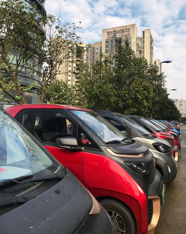 街边及人行道上常见专门的微型电动车位,横停的、竖停的都有,反正车身的长度和宽度都差不多。↓