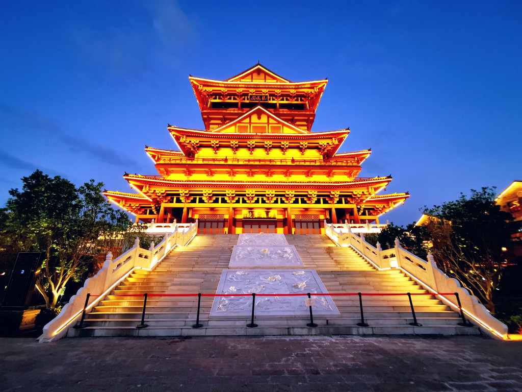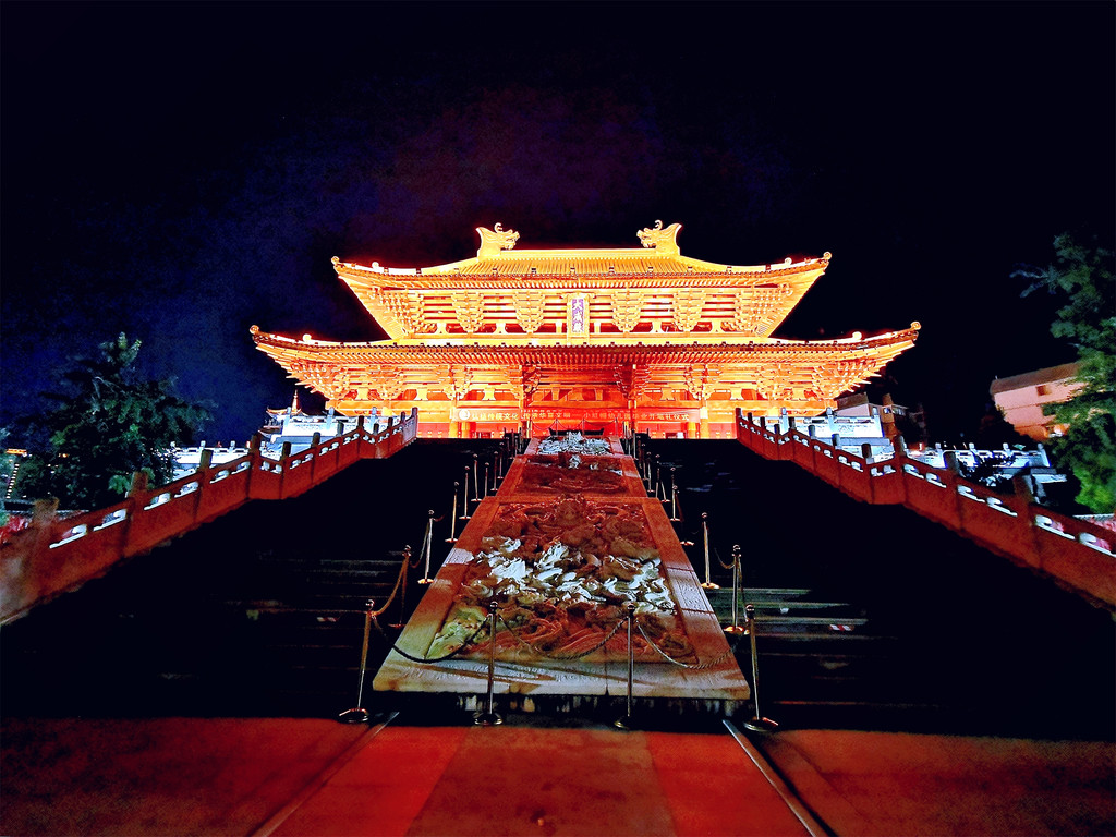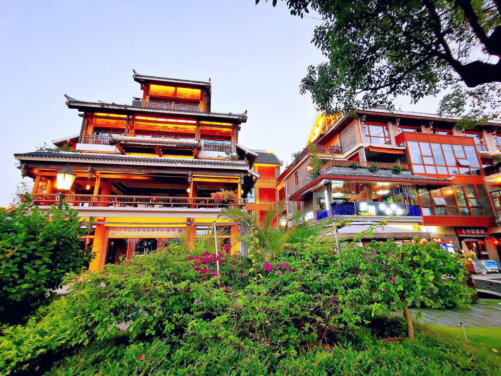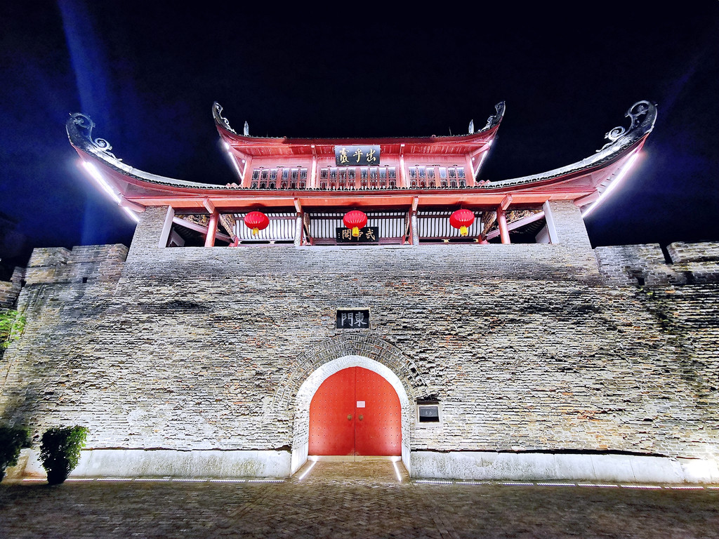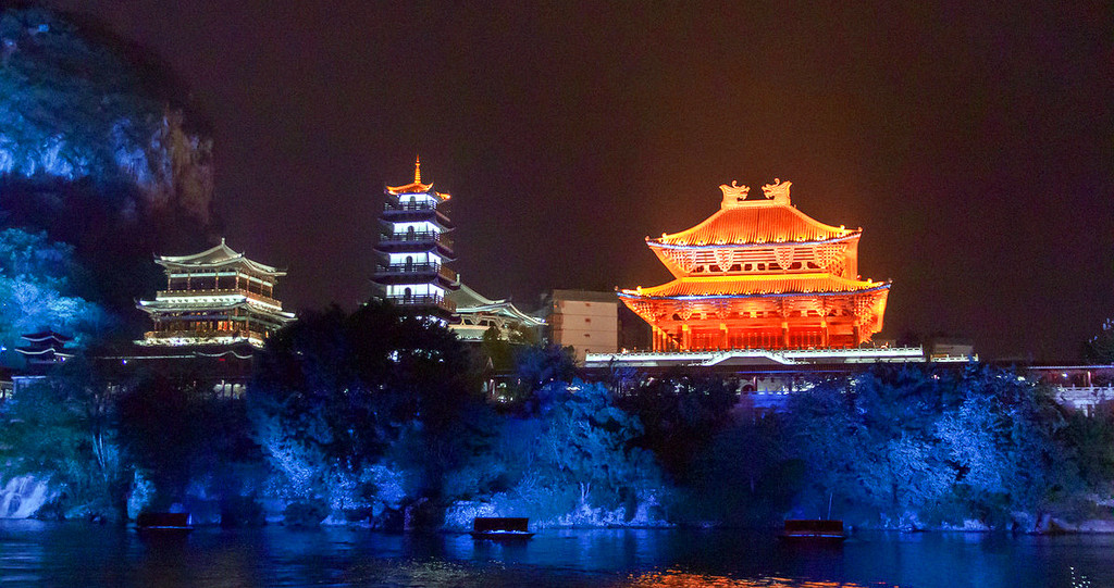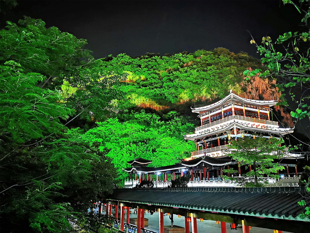 柳州文庙始建于唐贞观年间,1928年毁于全城大火,2009年重修,涅槃重生,依山临水,金碧辉煌,建筑以宋代风格为主,结合岭南地方样式,内有全国第一大铸铜贴金的孔子坐像。东门城楼始建于明朝洪武年间,楼高17米,是柳州最后的明清砖城,历经数百年风雨洗礼,巍然屹立柳江之滨,雄姿英发,展现着独特的魅力,这些古建筑在夜晚的霓虹映衬下散发着不一样的光芒。
