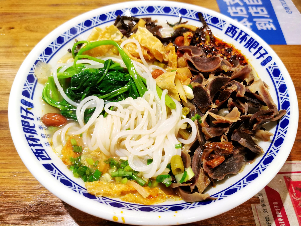 说到柳州的老牌螺蛳粉店,西环肥仔螺蛳粉一定会在其中,他家的螺蛳粉比较清淡,特有的酸辣鲜香融合在一起,再加上酸笋、木耳、花生、油炸腐竹等配料,让香味更显浓郁,配以我最爱的鸭肫,又是大快朵颐的一餐,却没想到中途乐极生悲,收到了航班取消的坏消息,话说虽然嗦粉很爽,但也不用好客到不让我回家吧?!这是硬要挽留我多住一晚的节奏啊!