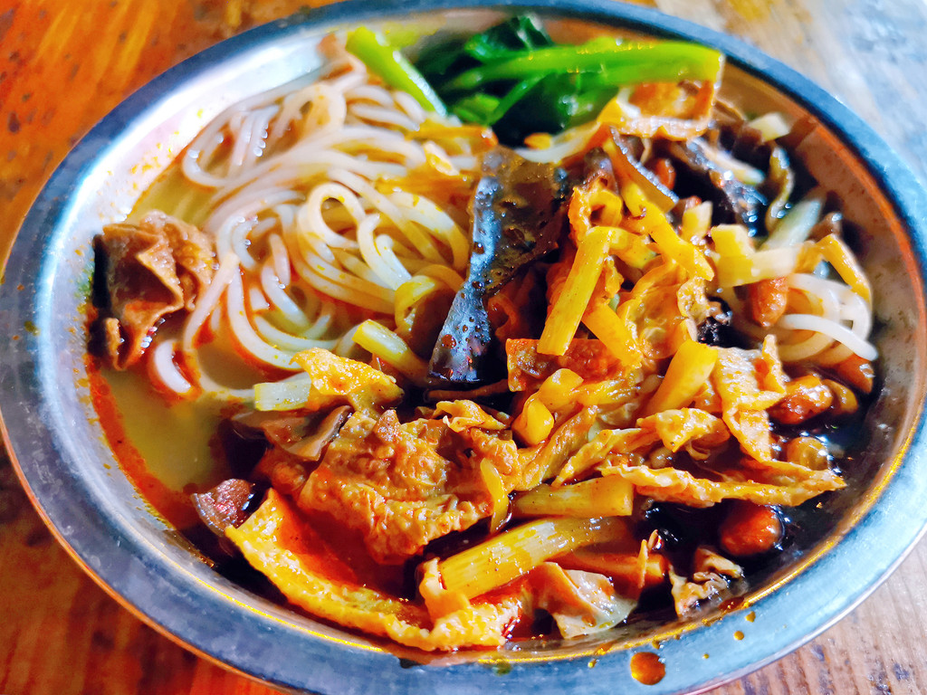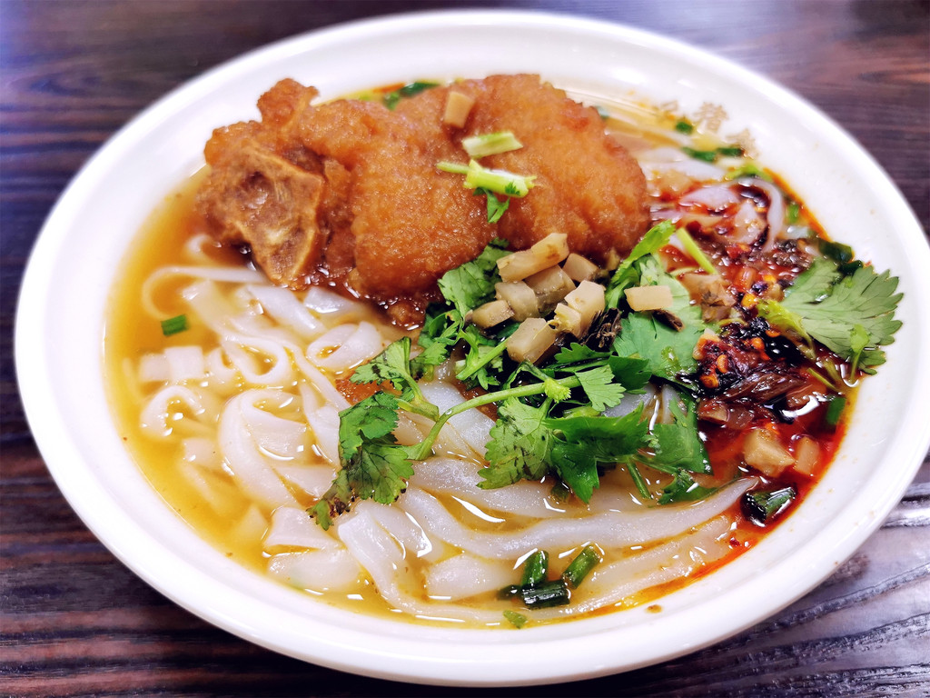 既来之则安之,既然有心留我,索性就将嗦粉进行到底,晚上再来一碗猪脚粉。林记猪脚粉,炸猪脚软糯Q弹,酥脆无比,满口的胶原蛋白,吸满了汤汁,汤底不油腻,清甜爽口,与重口味的螺蛳粉绝对是鲜明的反差,但味道都很不错。
