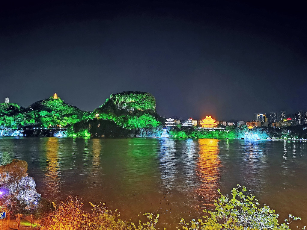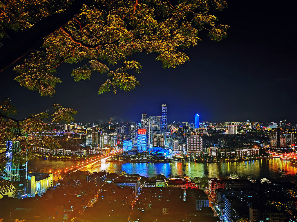 唐宋以来,马鞍山就是柳州名山,是柳州旧八景之一的"天马腾空",唐代柳宗元和明代徐霞客都在此留下了游记,自古便是登高观赏柳州全景的最佳观景点,是柳州市中心区的最高峰,山形东西峰突兀,中间凹陷,形似马鞍,海拔虽只有270米,但都是直上直下,徒步上下,再加上炎热的天气,还是稍稍有些吃力,但当我终登山巅,站在观景平台上俯瞰四周时,就觉得一切都是值得的,眼前的夜景无法单单只是用“美”这个字来形容,简直就是一场炫彩的灯光视觉盛宴,绚丽夺目的灯光点亮了所有的建筑,忽远忽近的灯光宛如是天上忽闪忽闪的点点星光,整座城市灯火斑斓、霓虹闪烁、车水马龙,数座大桥横跨江面,犹如长虹卧波,气势恢弘,让人无法挪开眼睛,难怪号称夜景能排进世界前五。