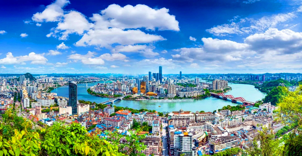 柳江蜿蜒数百里,如玉带三面环绕着柳州,三江四合,抱城如壶,使柳州市区形成了一个壶形的半岛,从建城至今已有两千一百多年的历史,属于典型的喀斯特地貌,形成了“拔地奇峰画卷开”的山水特点,这里石山奇特秀美,潭水幽深碧绿,百里柳江,百里画廊,柳江水质全国第一,全年空气的优良天数比率突破90%大关,水清、岸绿、河畅、景美,同时柳州又是一座拥有文化历史底蕴的工业名城,新能源汽车的建设更是走在全国最前列。