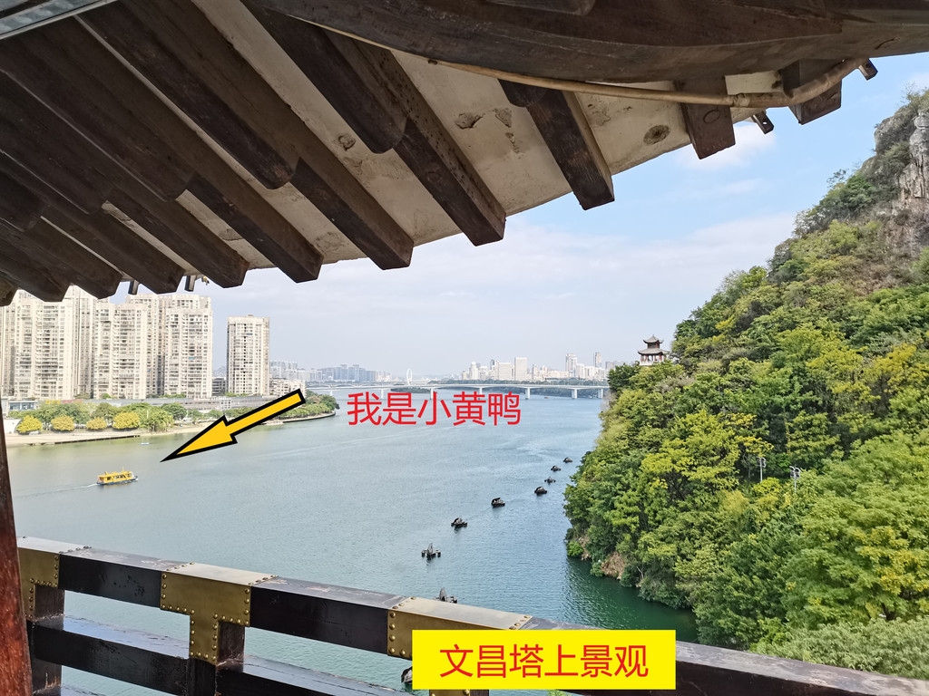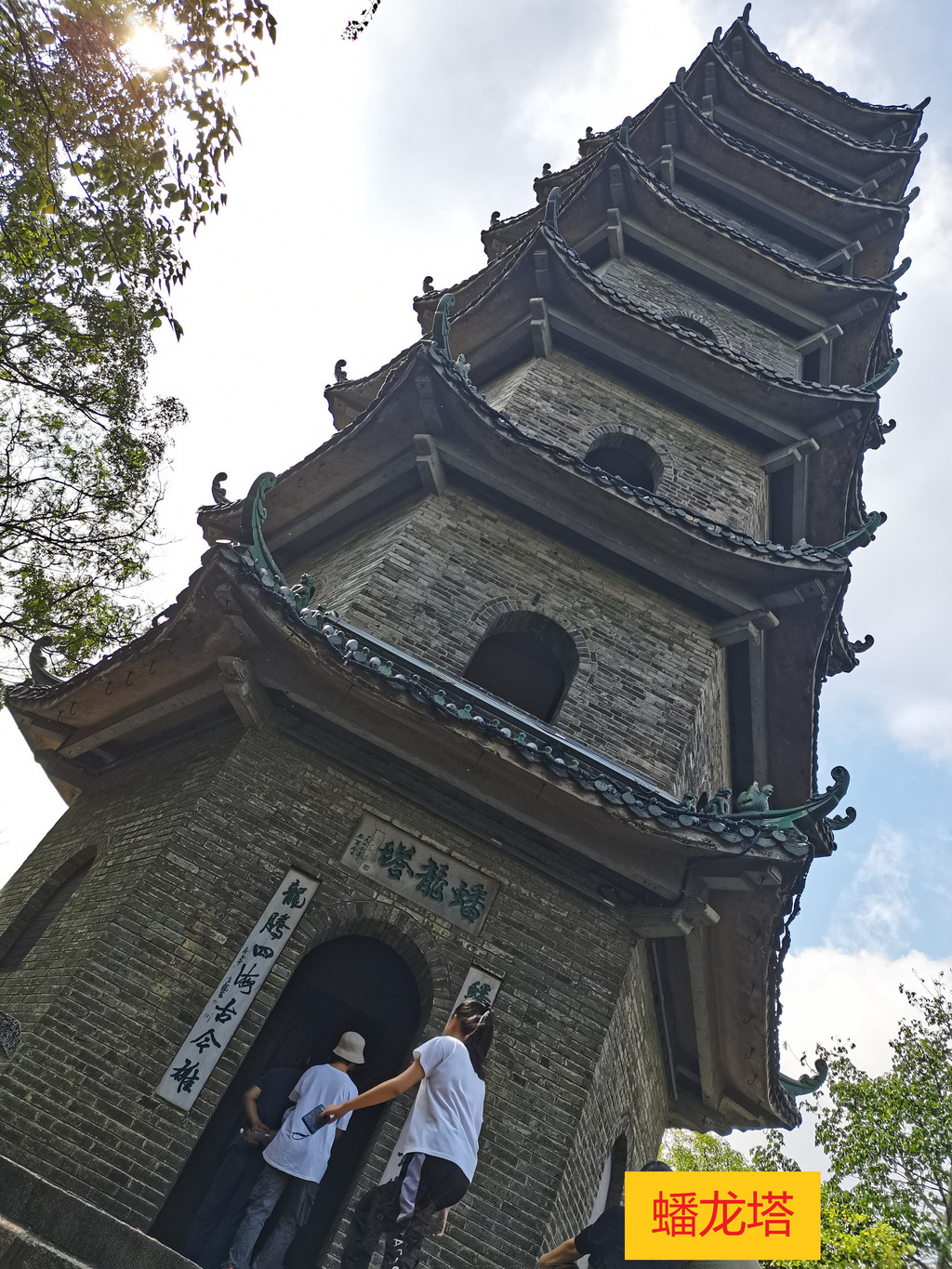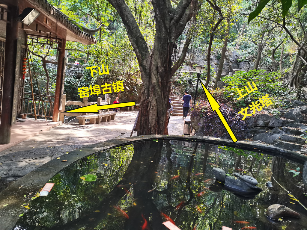 登山,10分钟可以到达矮的哪座山峰,上山路上经过徐霞客当年“世外之楼杳无地,壶中之透别有天”的地方。山峰上有座盘古庙,庙前有个平台,庙后就是蟠龙塔,只能上到二层。有体力的可以去高的那座山峰,要先下再上,山顶是文光塔,以前是可以上到塔顶的,我十多年前爬上去过,很陡很窄,现在二层到三层的楼梯被拆掉了,只能上到二楼,我们这次没有去,直接下山,下山就是窑埠古镇。