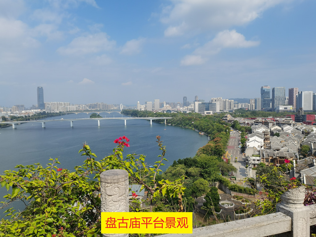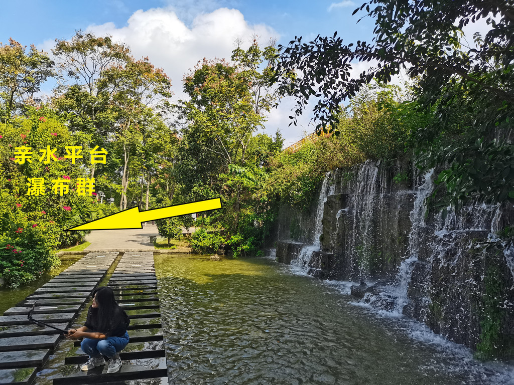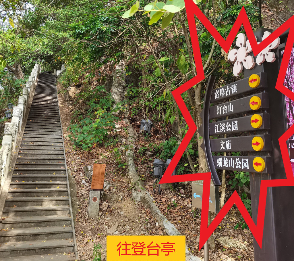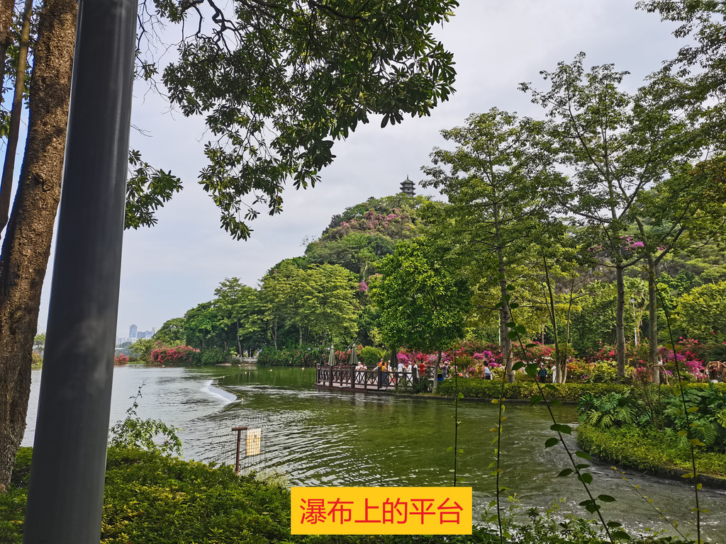 11:00离开文庙,从文庙西侧围墙旁小道前行,步行10分钟到达登台亭,登台亭往前就是下山,山脚是在柳州最大人工瀑布上方,是个平台,这个时间在平台上三角梅开得不错,穿过平台往前就可以到达蟠龙山,11:20可以到达登山处。