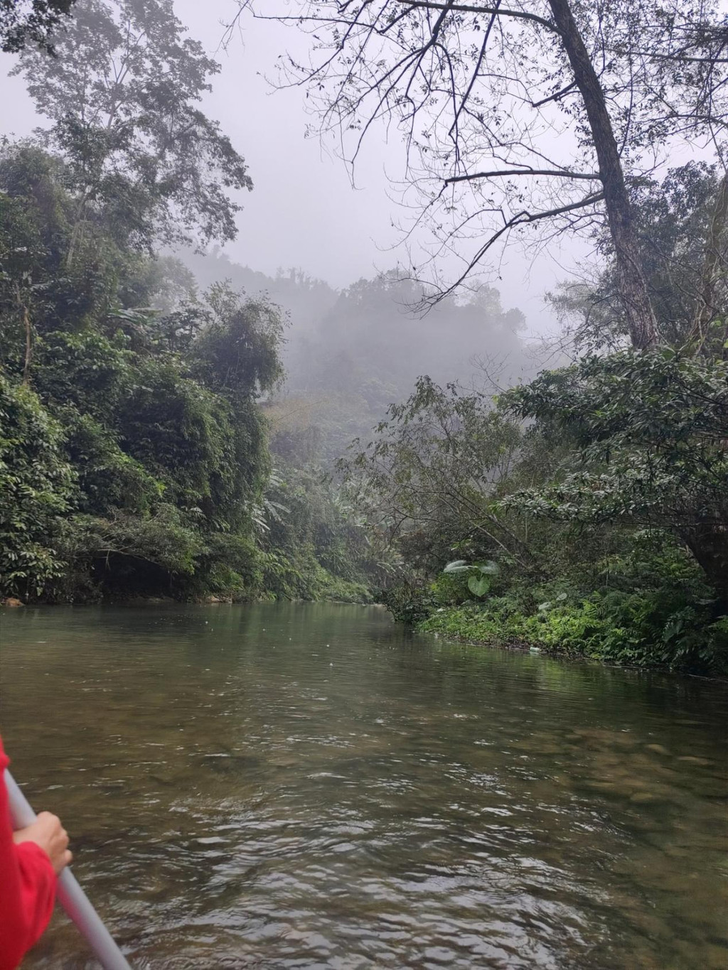 三峡两洞的漂流不仅仅是峡谷中的一叶扁舟,更是溶洞的暗河探秘。长达一公里的钟乳石洞,因为下雨的缘故湿湿嗒嗒,水之精华在石洞的过滤后凝集成一滴水滴,滴落在我路过的安全帽上。下雨的天空,云层渐渐加厚,山谷的形状只留依稀轮廓,即将无法辨别。我想,在晴日,那里抬头便可看到照进峡谷裂缝的光束。