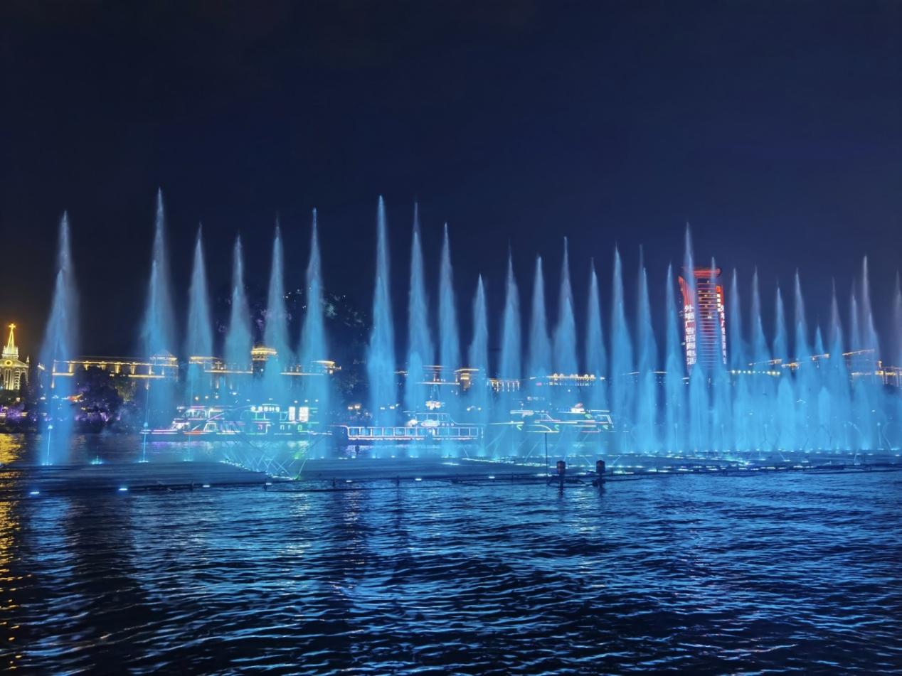 在看亮灯之前的几个小时去了当地的洗头店,真心不错,可以试试。感觉当地人好会享受,连小孩子都参与进来了,躺着让人洗头的感觉真的太爽了。然后就去等喷泉了。大家都是来打卡无音乐的音乐喷泉的。在柳江边上音乐喷泉有20:00、21:100两场,每场15min。