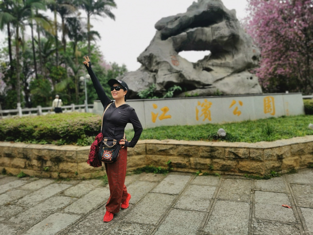 D2、早上仍然到附近美丽精致的滨江公园散,之后休息休息步行游鱼峰山公园。步入公园就看见,一群一群爱好歌舞的人们,此起彼伏的歌舞声,声声动情曲曲入耳,美妙无比。大多以情歌对唱为主,现场取景取意编词,现场和韵演唱,此情此景再现刘三姐当年盛况。