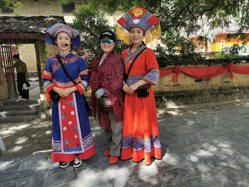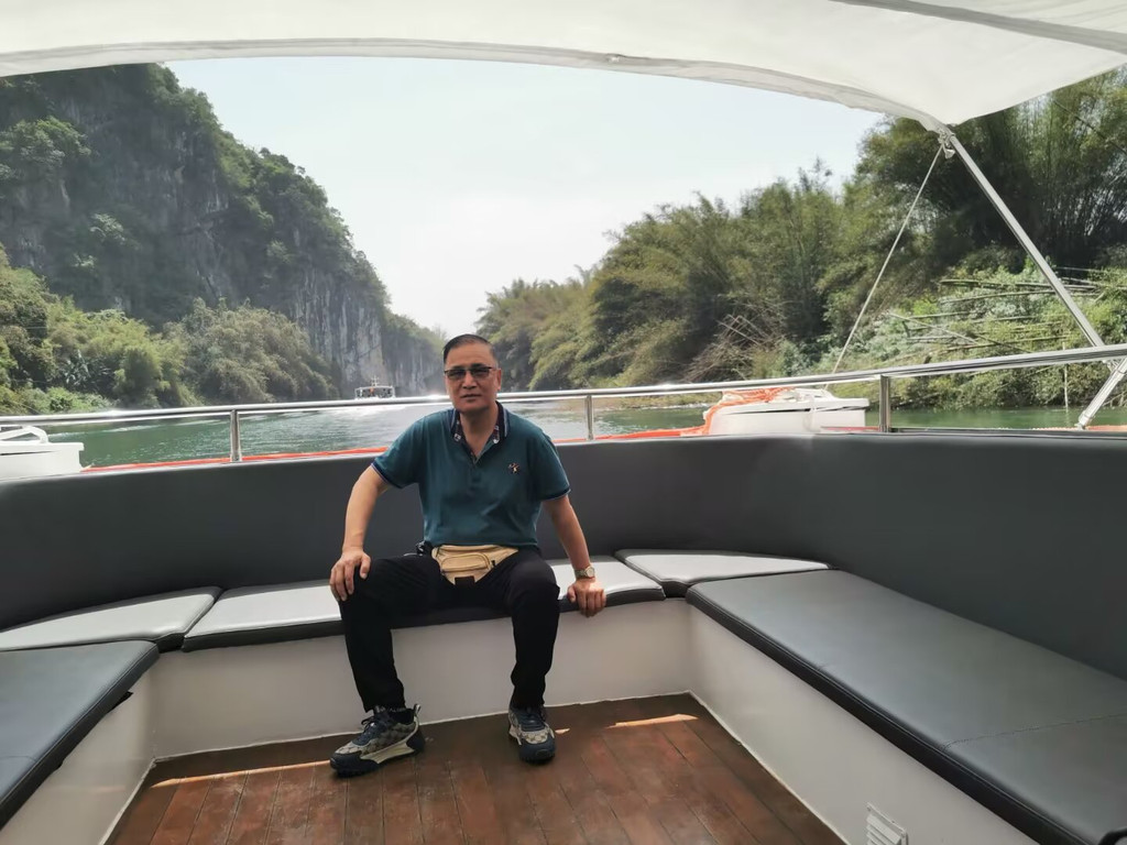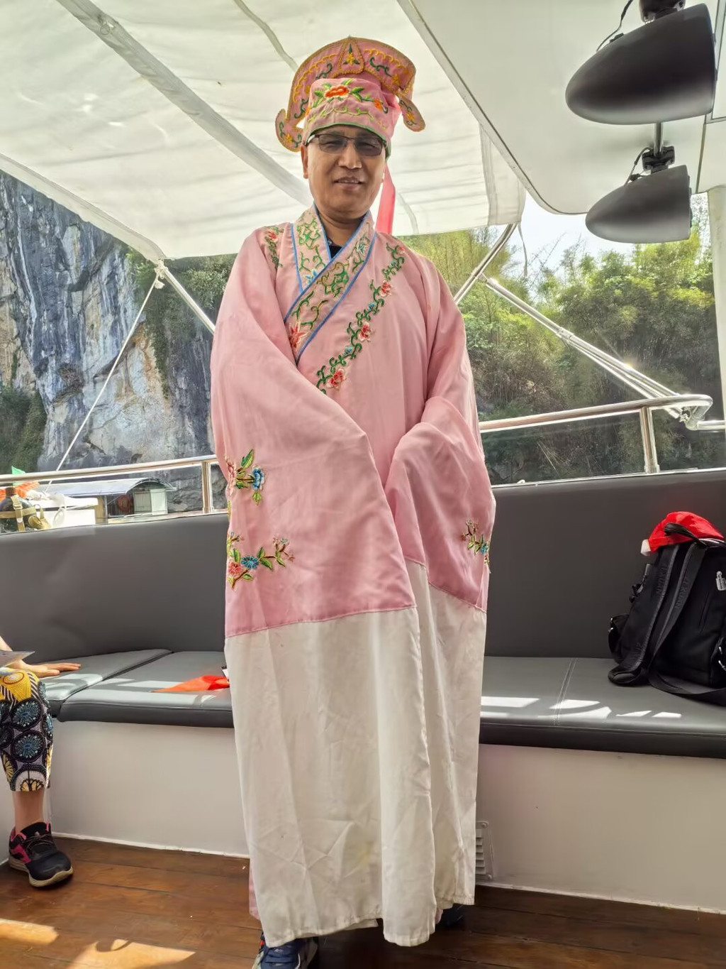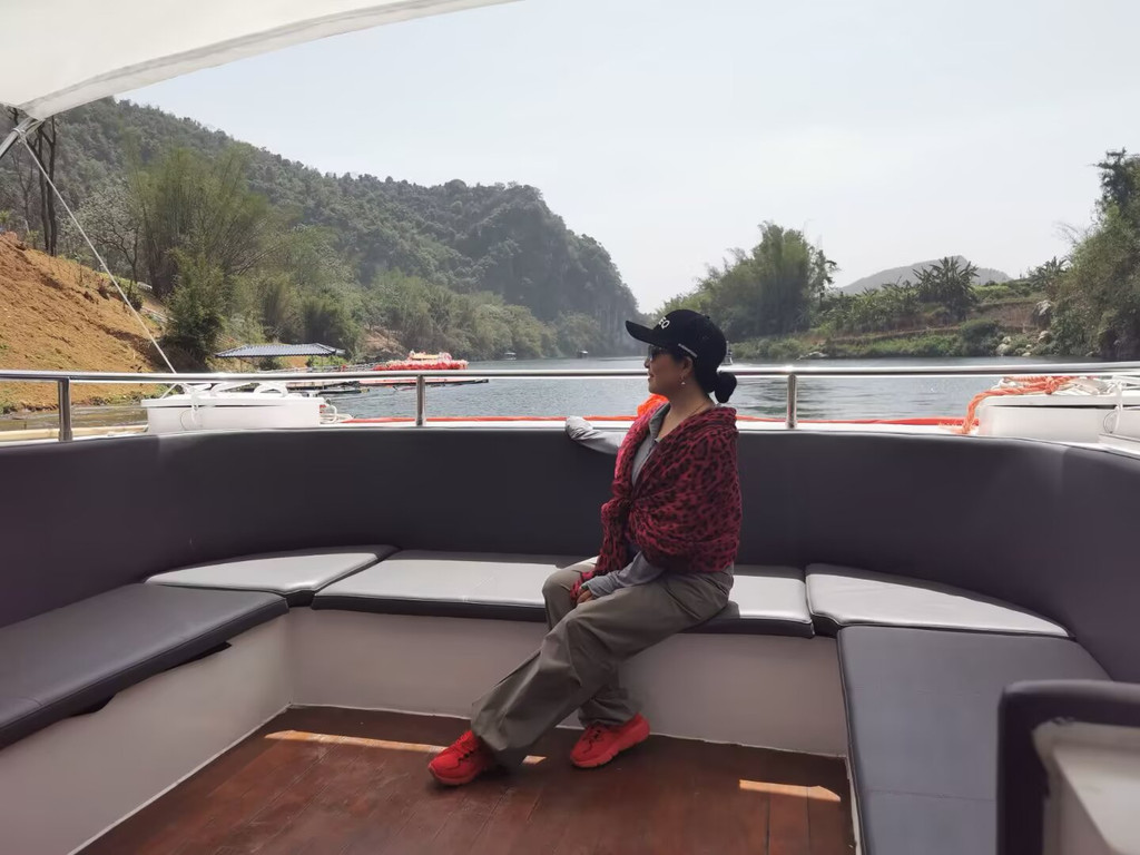 乘邮船一路沿江而行,导游小姐身着漂亮的民族盛装,侃侃而谈介绍当地的人文风情、山景水色、三姐传奇等等,特别是三姐故里,歌海宜州名不虚传,通过导游美妙的歌喉演绎,展现的淋淋尽致。