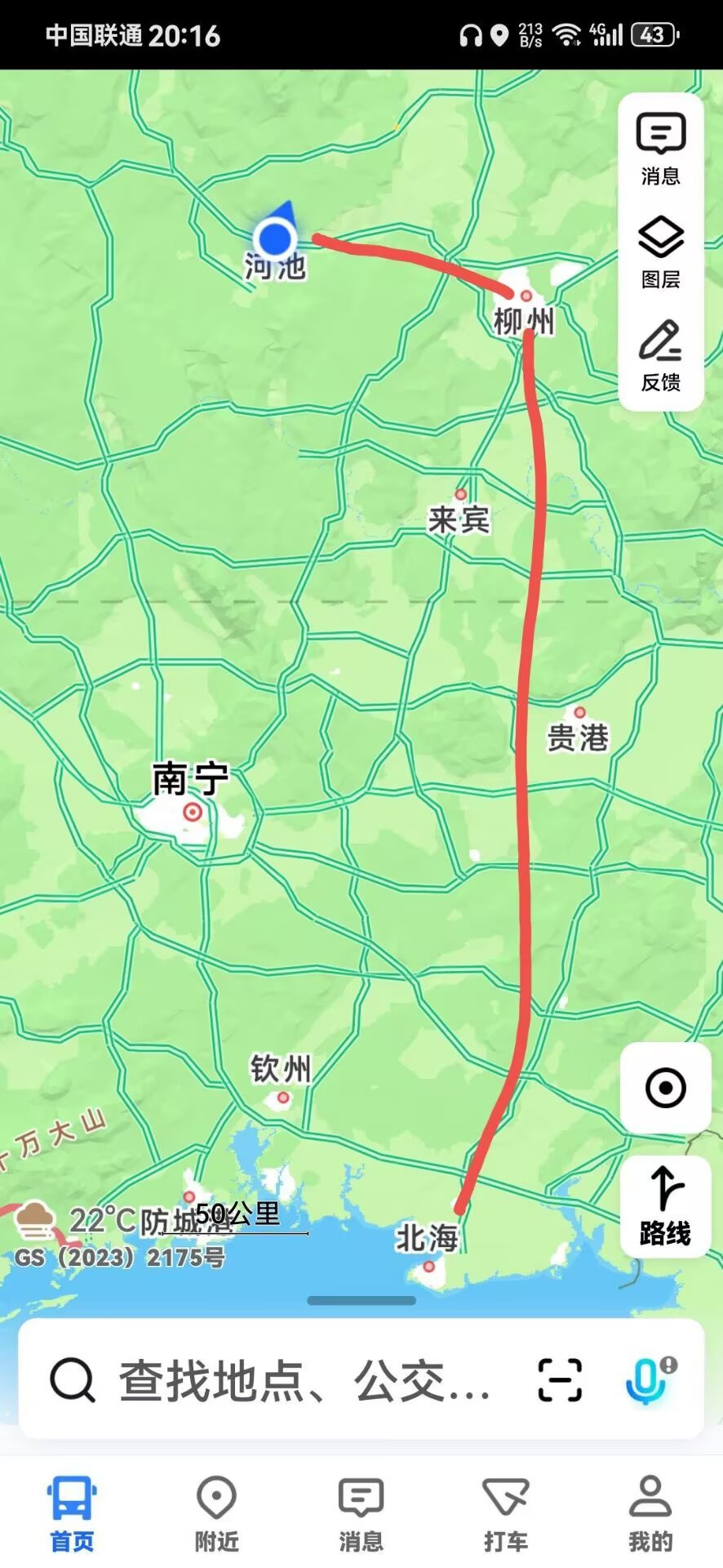 D6、早饭后,乘火车由宜州经柳州转车返回北海,经柳州转车(171元)。