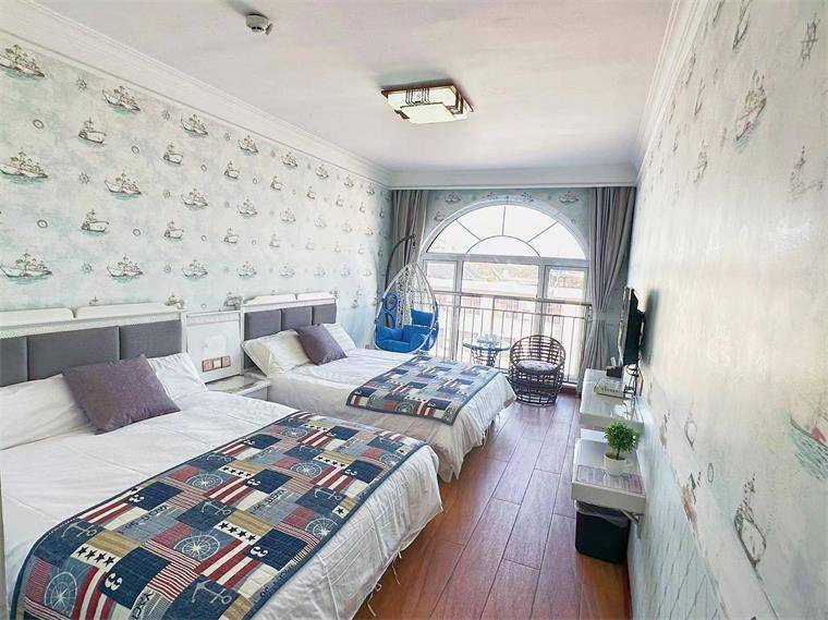 亮点特色:为了方便游客住的像家一样温馨,内设电梯直达房间,能够让大家感受到宾馆式的服务与热情。性价比超高。夏天的北戴河是一个绝佳的玩水胜地。北戴河华伦奥宾馆在秦皇岛占尽地理之宜,早起看个日出还是不错的。房间设施:共有35间客房,可接待200左右,都是主题房,分别有地中海风格,街景大床房,阳光标间双大床,独立厨房家庭房(可蒸煮海鲜)儿童卡通亲子房,房间很宽敞,大落地窗,独立吊椅。阳光很棒。床也很舒服。