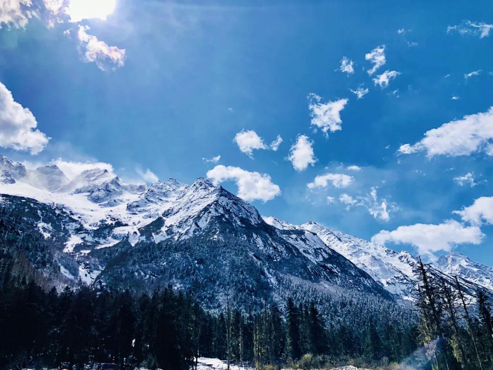 告别了冬日的萧条,雪山依旧巍峨,却多了一丝温柔和随和。