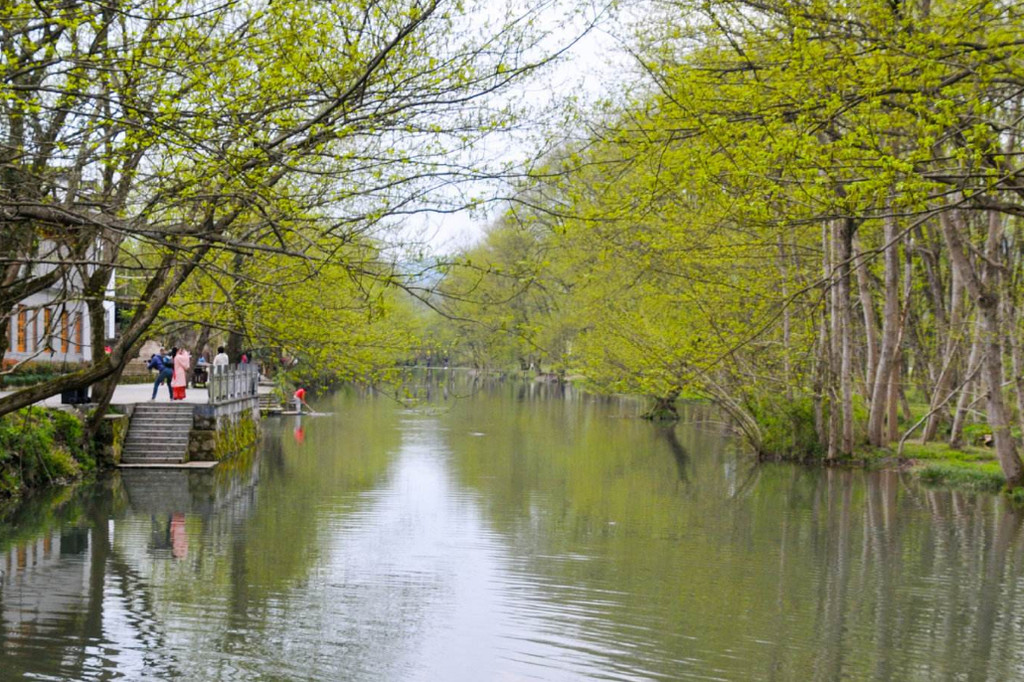 古村镇内景色入眼都是一片葱绿,脚下踩的每一块青瓦砖都有历史的沉淀,到了十月景色一夜之间都会变为秋天的黄色。
