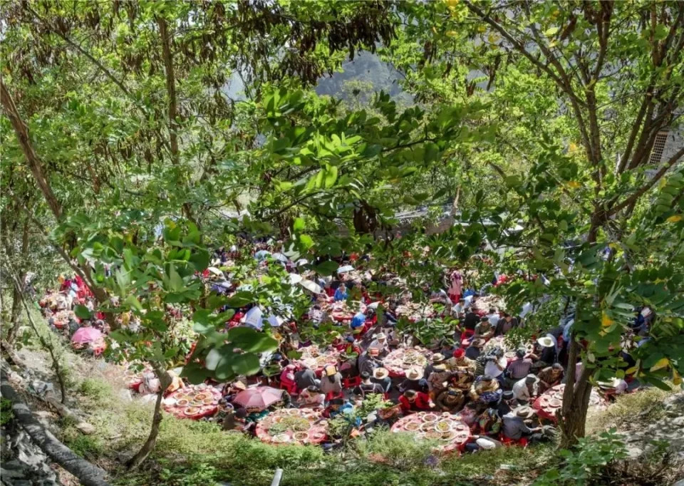 切口平滑的竹管中有潺潺的清水流出,沏茶的姑娘微笑的执着茶壶,云水相映,人面桃花,不是桃源,更胜桃源。