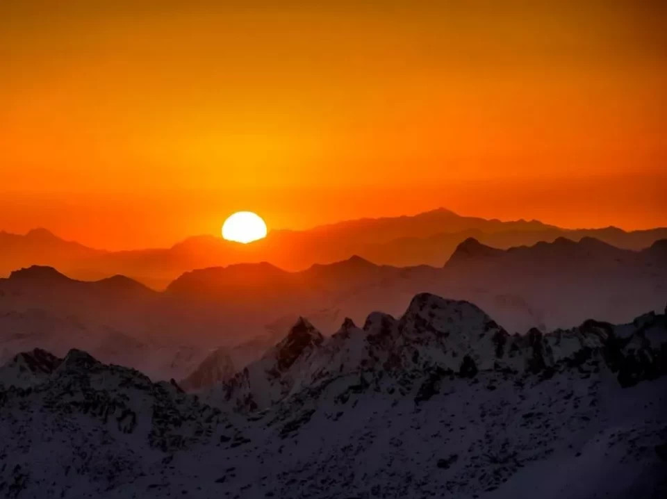 高山上挂满了纯净白雪,新升的太阳照射在毕棚沟的大地,完全不需要构图,在雪地里随意转个圈,就能捕捉到完美瞬间。