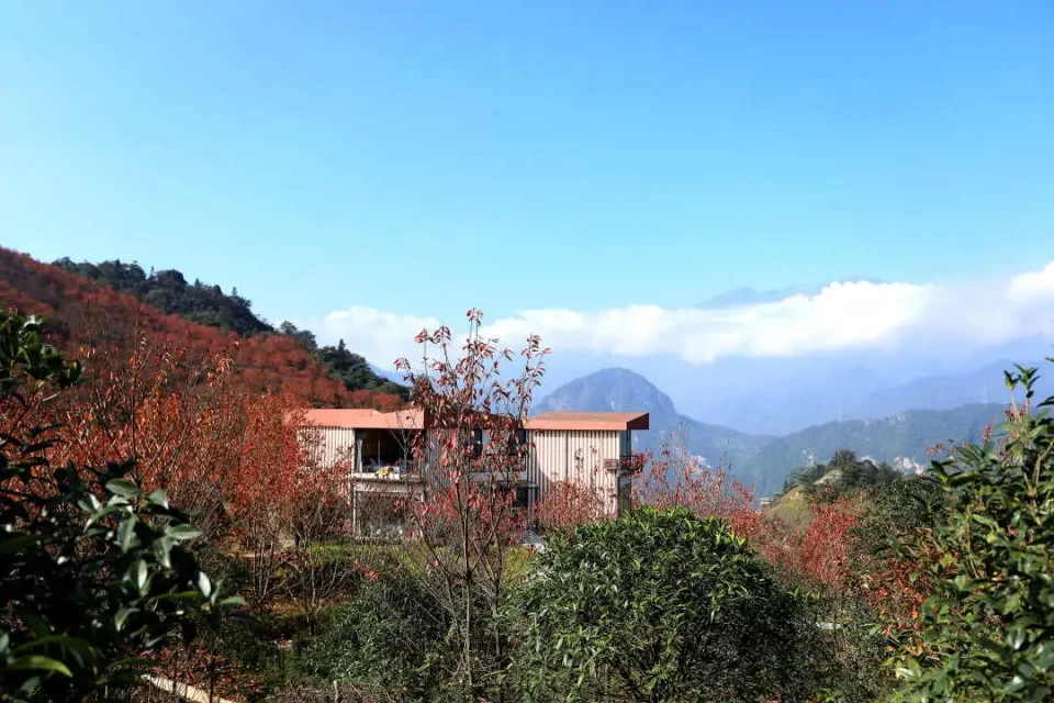 民宿大大小小的套房、泡泡屋都坐落在百亩樱花里,推开门就是红叶、云海、雪山……让人赞叹与依恋!