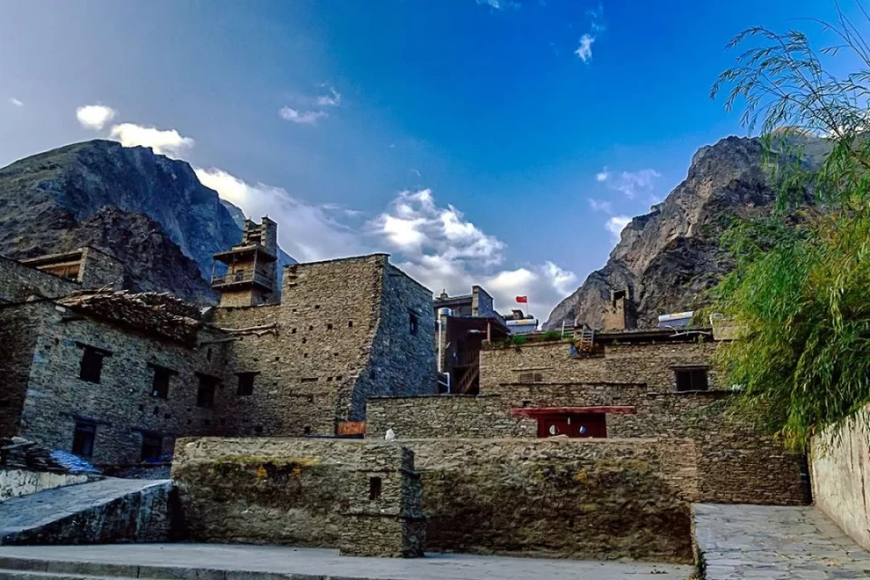 穿过栈桥,墙瓦古朴自然,独特的建筑群保留着川西北最原始的嘉绒藏族风情。
