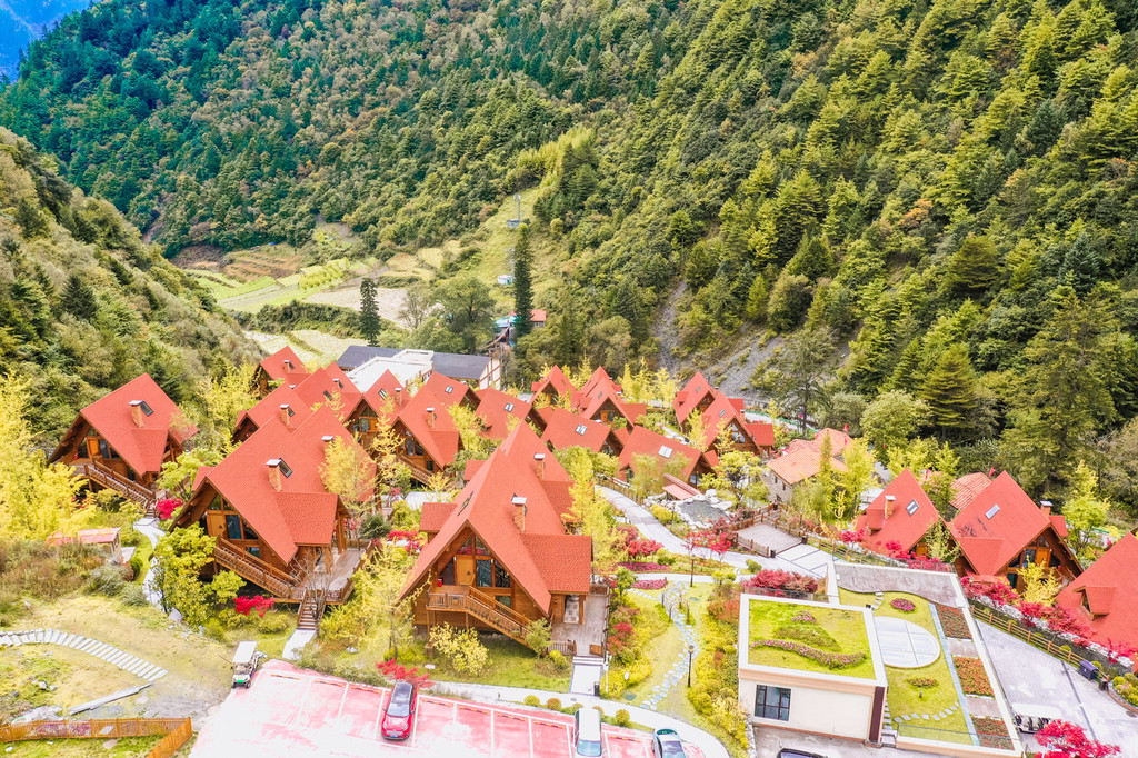 红色屋顶的是它的二期,小木屋别墅。
