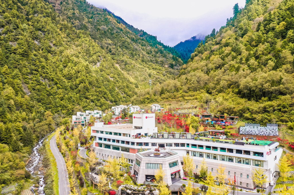这家酒店就是古尔沟的华美达酒店,是整个 理县 最火的一个网红打卡地。