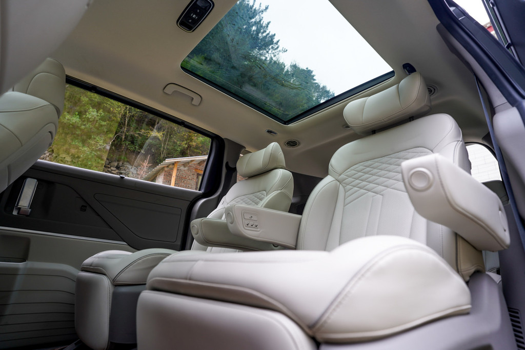 二排座椅还可以一键调节三种模式,其中,座椅90°标准模式方便乘客上下车,110°观看模式配合小桌板实现车内娱乐,135°睡眠模式可尽情享受睡眠。