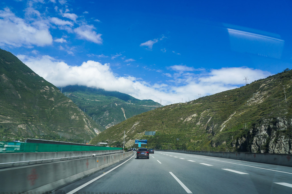 出发的时候, 成都 还阴雨绵绵,穿过几个隧道之后,就是蓝天白云了。