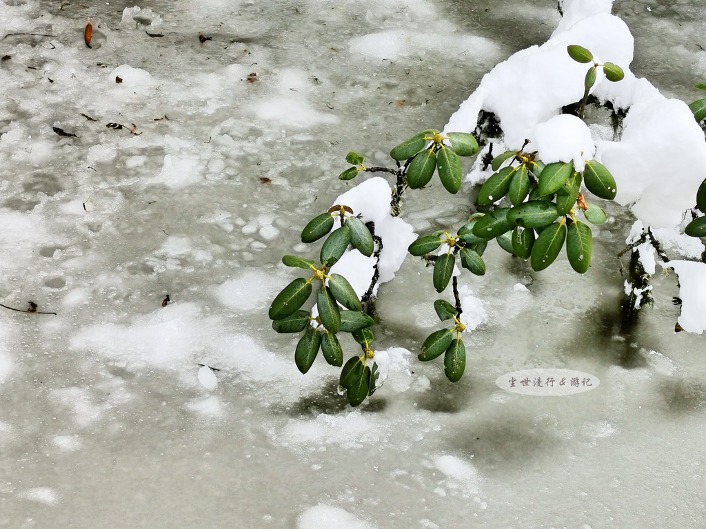 从木栈道转入游步道,步道上留有薄薄的冰块。这里的植物种类较多。
