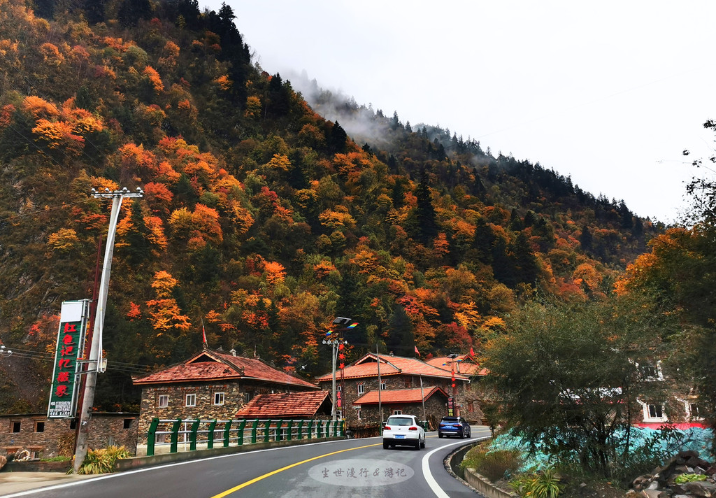 米亚罗风景区是中国发现并开放的面积最大的红叶风景区之一,曾经比北京香山红叶风景区大180余倍。行驶在317国道上,彩林片片,群山如染,五彩缤纷。