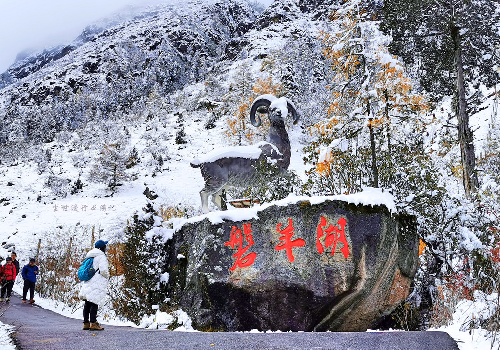 在这深秋时节邂逅一片冰天雪地,实在是天赐良机!站在磐羊湖边,静静地欣赏这大自然赋予的美景。