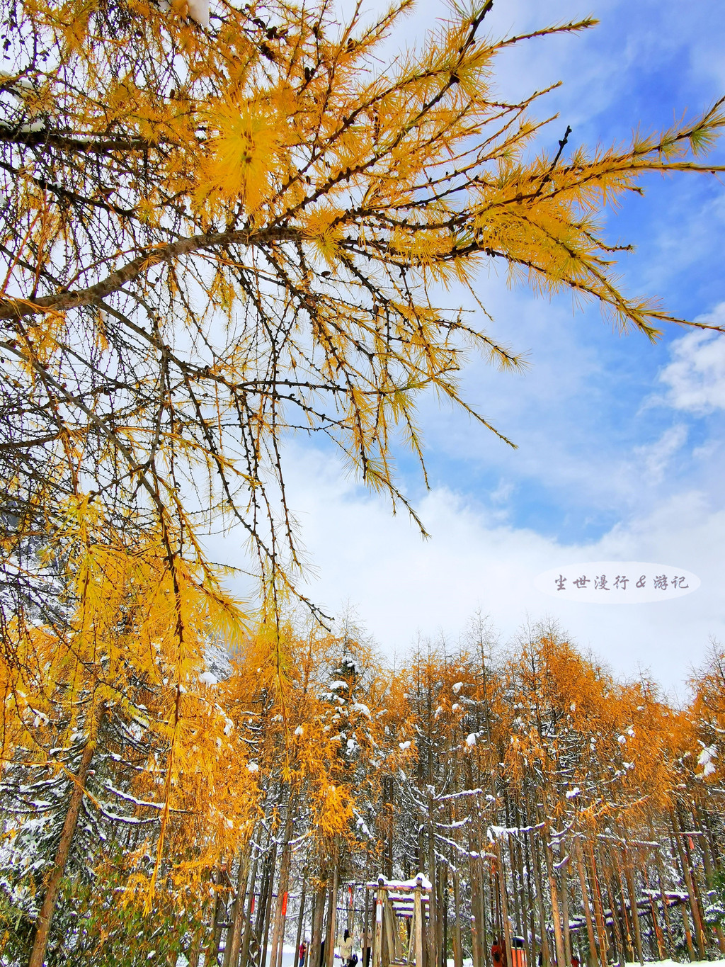 向前是片红杉林。橙红橙黄的艳丽,配上蓝天白云、纯洁的白雪,其自然风光原始惊艳,美得让人移不开眼睛。