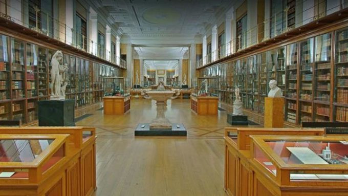 这座美丽的展厅致力于18世纪的启蒙时代,曾被称为国王图书馆。它建于1823年至1827年之间,收藏了国王 乔治 三世收集的6万多本书籍。今天,在 大英 图书馆依然可以看到许多这样的书,你可以看到一些引人注目的物品和珍品,包括最早发现的恐龙之一的化石——鱼龙化石,它是由博物馆创始人汉斯·斯隆爵士收藏的。