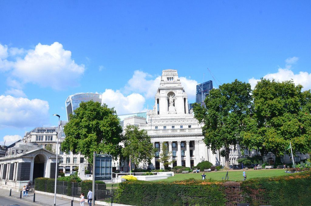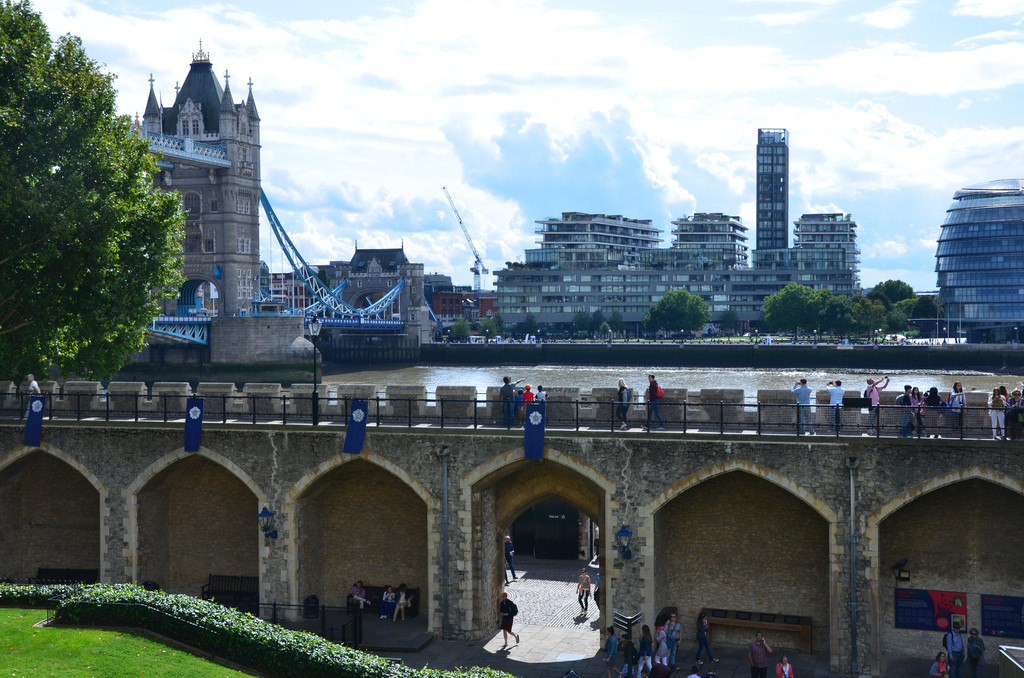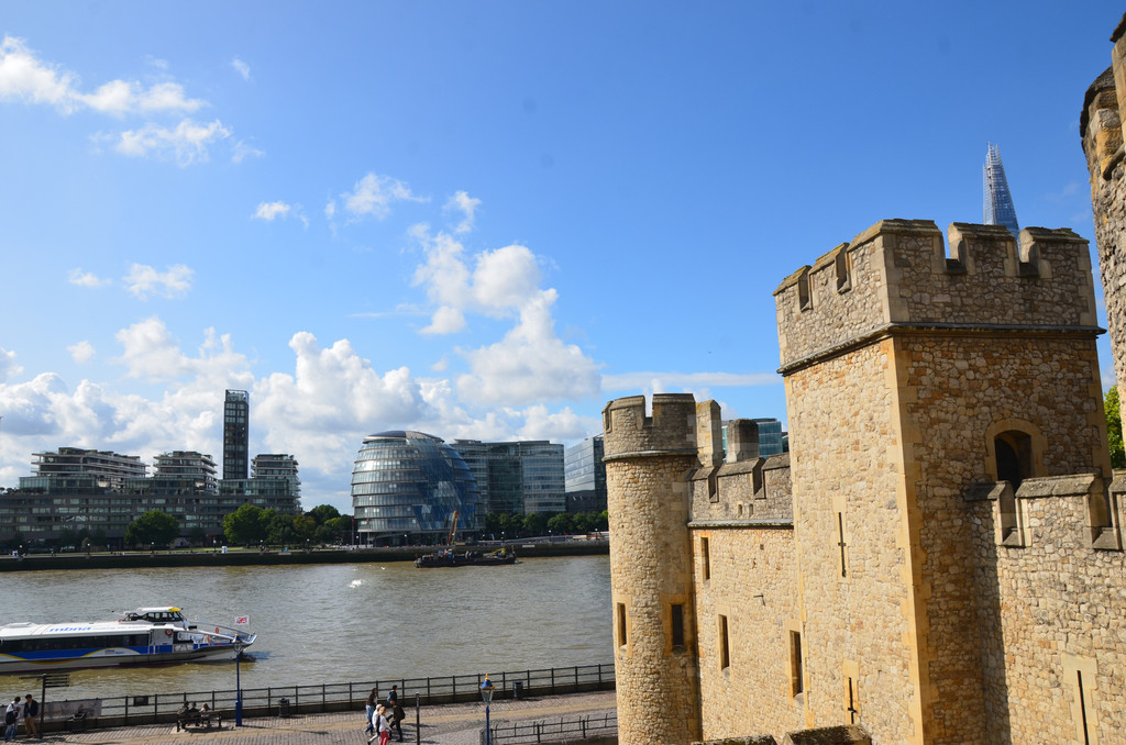 图 伦敦塔城墙内外,绿野与晴空、古典与现代完美融合,宛若仙景。