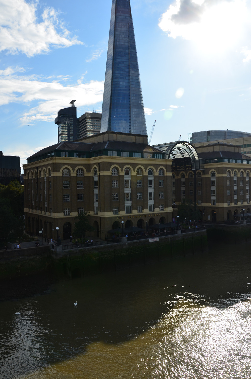 图 河畔风光:2002年落成的椭圆形伦敦市政厅与2013年建成的碎片大厦尖顶相映成趣。登碎片大厦观景约需30英镑,而市政厅一楼大厅和顶层对公众开放,被昵称为 “伦敦客厅”。